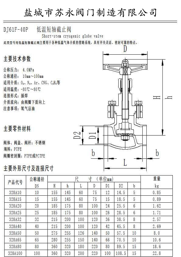 低溫短桿截止閥